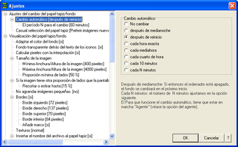 El programa incluye 50 fondos por defecto, aunque puedes añadir tus propias imágenes y fondos. Y además puedes escoger entre cambiar cada día, cada hora o en cada inicio del sistema, por ejemplo.
